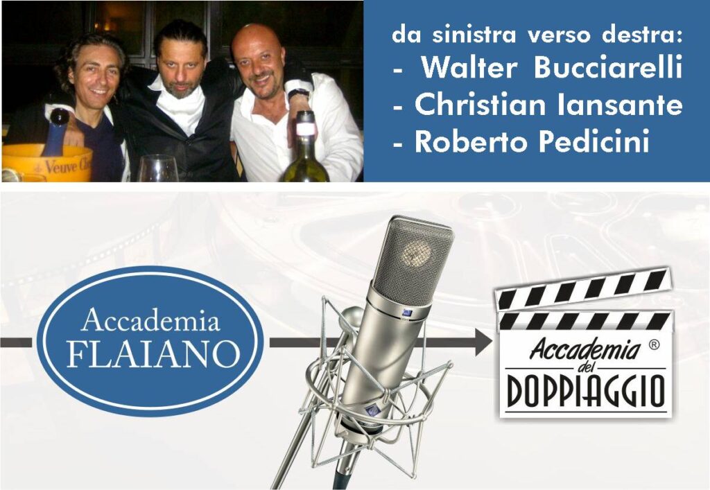 L’idea nasce nell’estate del 2002 dall’intuizione di Walter Bucciarelli, attuale direttore dell’Accademia, che coinvolge fin da subito Christian Iansante e Roberto Pedicini nel progetto. Dopo pochi mesi prende vita una delle prime scuole professionali di doppiaggio in Italia: l’Accademia Flaiano, successivamente trasformata in Accademia del Doppiaggio®. L’anno seguente, l’attività di formazione viene supportata da un sito web che inizia a raccogliere numerosi consensi a livello nazionale.