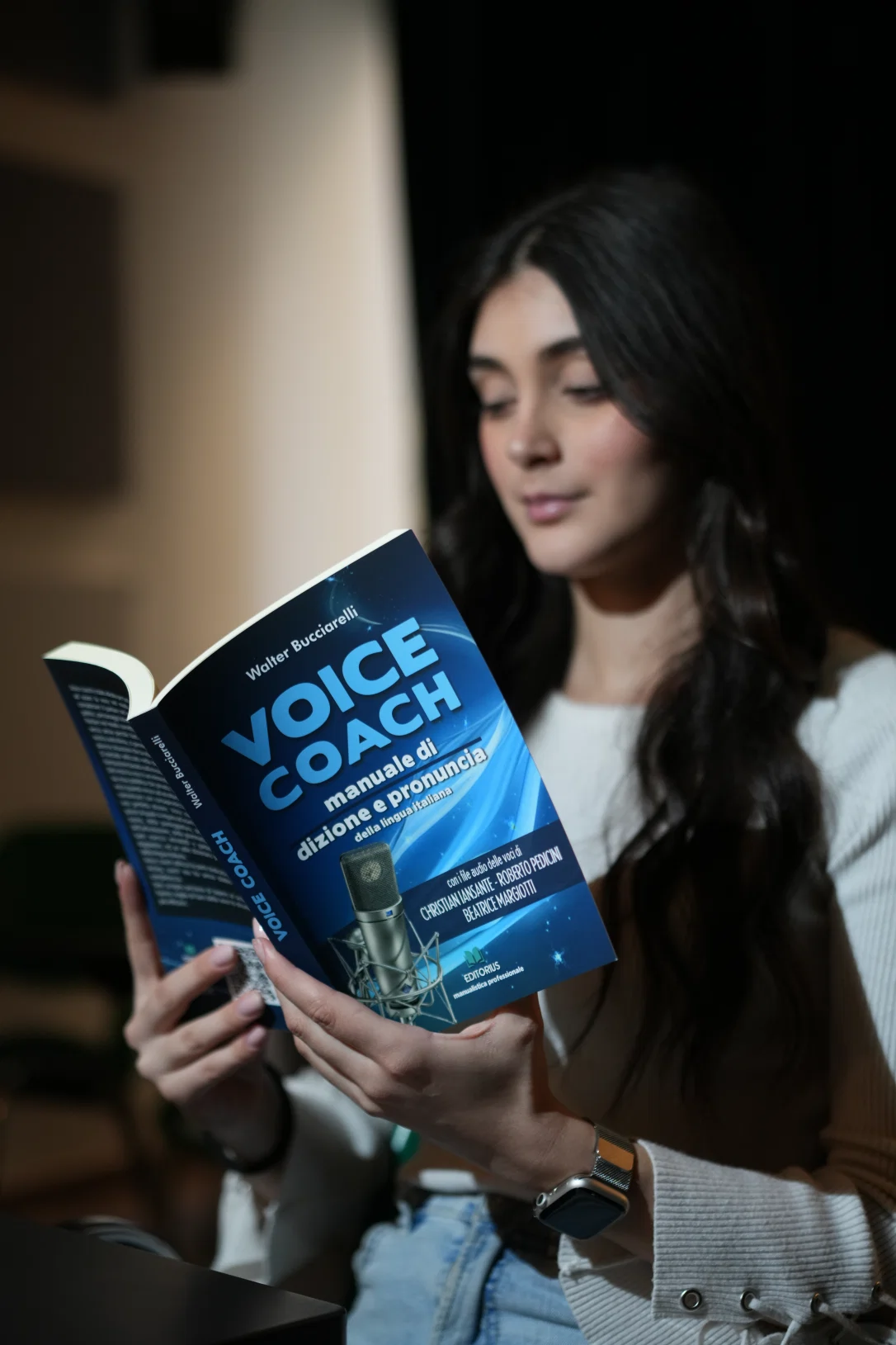 Agli Allievi dei Corsi di Doppiaggio Base verrà fornito gratuitamente “Voice Coach“, manuale cartaceo di dizione e pronuncia (192 pagine) molto utile per chi si addentra nel mondo del doppiaggio. Per un doppiatore la dizione è la prima materia da studiare per affrontare il percorso di formazione nel modo giusto. Voice Coach è un manuale completo per imparare ad usare la voce in modo corretto attraverso esercizi di respirazione, studio del suono, ritmo, lettura, punteggiatura, interpretazione, articolazione, sillabazione, grammatica dei suoni, e tanti esercizi introdotti e guidati dalle voci di Christian Iansante, Roberto Pedicini e Beatrice Margiotti. Il volume comprende anche un utile dizionario per una corretta pronuncia dei vocaboli più importanti. Oltre a Voice Coach gli allievi riceveranno anche uno zainetto monospalla, Block notes, penna e laccetto porta badge, brandizzati Accademia del Doppiaggio®.